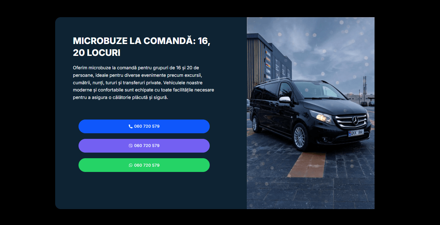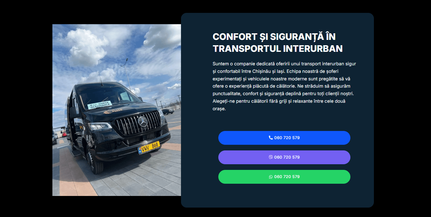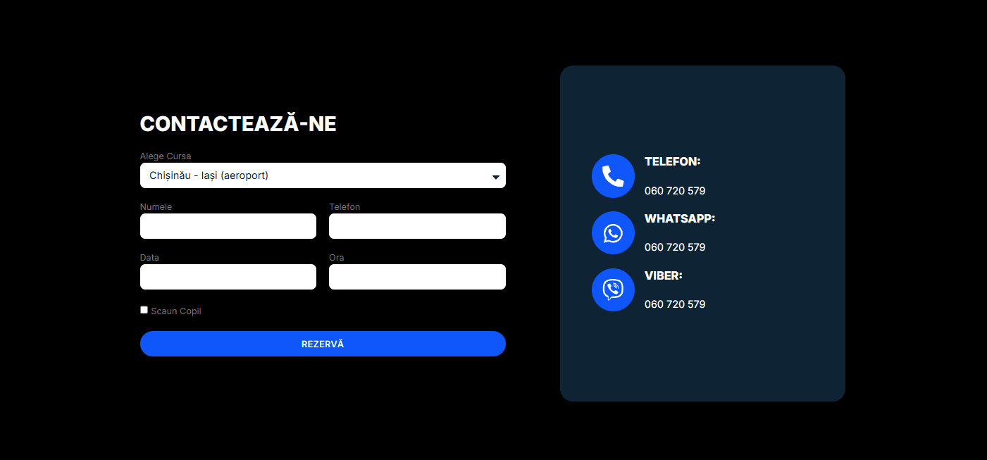 Am integrat formulare de contact și butoane de apel direct intuitive și vizibile, simplificând semnificativ procesul de rezervare și scurtând drumul de la intenție la confirmarea călătoriei sau a expedierii.