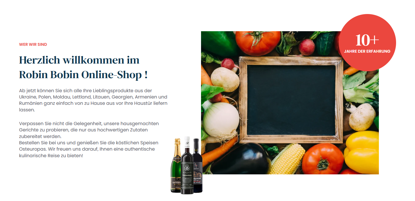 Robin Bobin este o prezență distinctă pe piața din München, poziționându-se ca o Gastro Boutique dedicată specialităților est-europene și produselor alimentare de înaltă calitate. Proiectul a avut scopul de a transpune atmosfera exclusivistă a locațiilor fizice (Giesing, Hadern) într-un mediu digital care să reflecte prospețimea produselor și expertiza culinară, consolidând imaginea unui brand premium care îmbină comerțul cu amănuntul cu servicii complexe de ospitalitate.