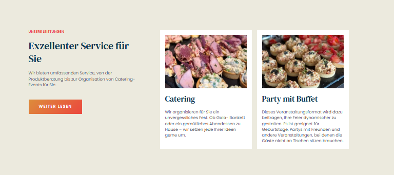 Prezentarea distinctă a diviziilor de Catering și Evenimente față de magazinul online, pentru a adresa audiențe diferite.